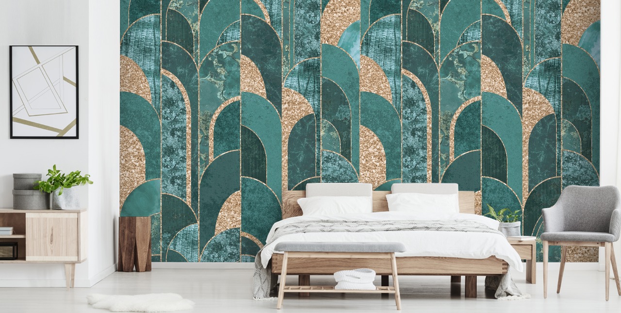 Forvandle hjemmet ditt til et luksuriøst interiør med et fantastisk Elegant Art Deco Muted Teal tapet fra Andrea Haase. Det er skreddersydd!
