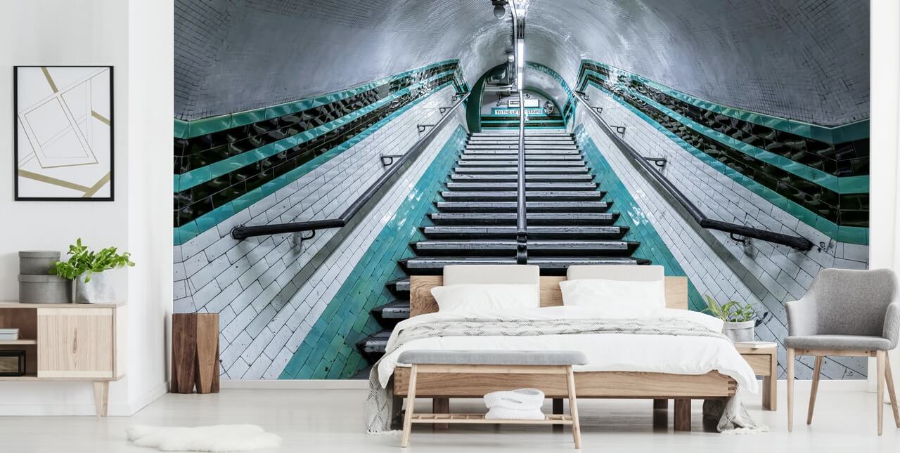 Skap en følelse av høyde i et lite, lavt tak rom med dette Up We Go Underground veggmaleri! Boliger eller arbeidsplasser som er mer romslige er gode for mental helse. Så hvis du har et trangt rom som desperat trenger å åpne opp, velg dette London Underground veggmaleri. Det vil umiddelbart skape illusjonen om at rommet ditt er mye større enn det faktisk er.