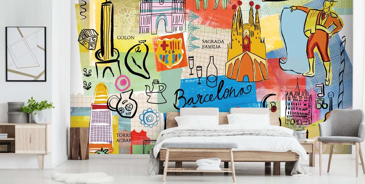 Tamed farge på veggene dine med dette skreddersydde Barcelona Travel veggmaleriet designet av Farida Zaman. Brimming med farge og energi, tror vi at dette Barcelona tapet ville gjøre en fantastisk funksjon vegg i en sosial stue eller en kul kafé satt i denne fantastiske byen.
