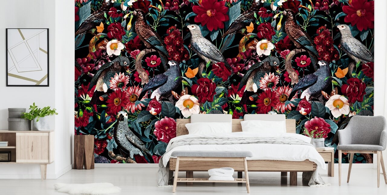 Nytmørke og dekadente farger i hjemmet ditt med dette laget for å måle Blush Floral and Birds veggmaleri fra Wallsauce.com. Et vintage-inspirert tapet laget av Burcu Korkmazyurek, vi tror at det vil gi mye dybde og skjønnhet til veggene dine.