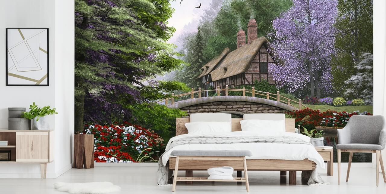 Nyt denne vakre Bridge Cottage tapet veggmaleri av Dominic Davison. Skreddersydd for å passe veggen.