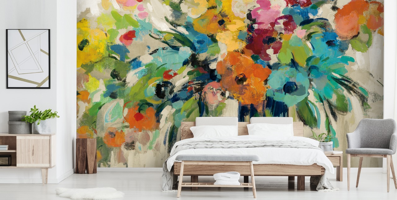Pust liv inn i hjemmet ditt med vårt Cloud of Flowers veggmaleri av Silvia Vassileva.