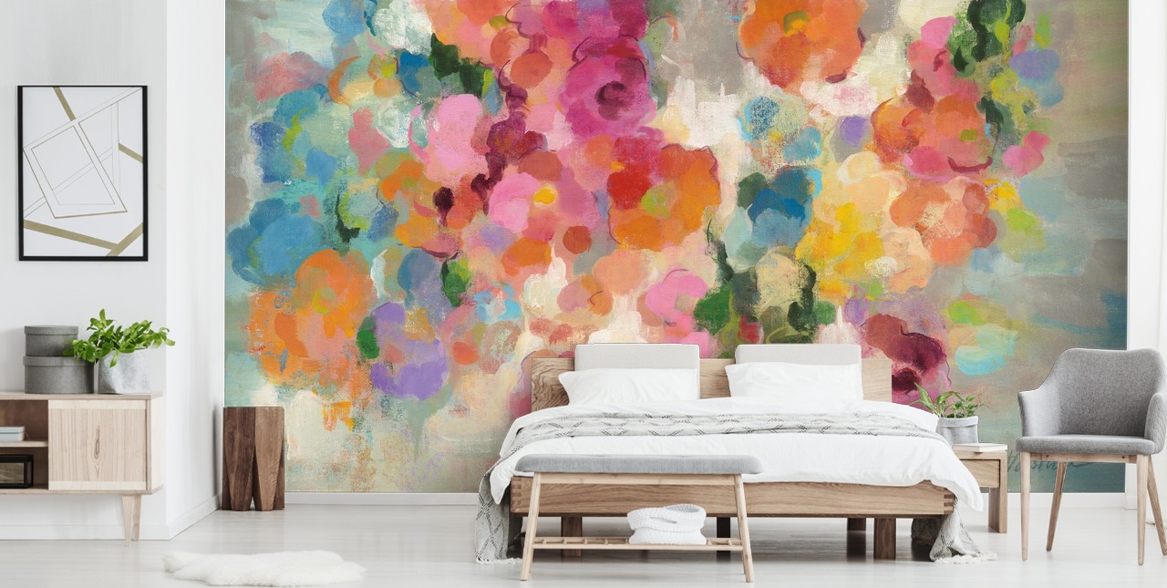 Fargerik hage - Blomsterveggmaleri