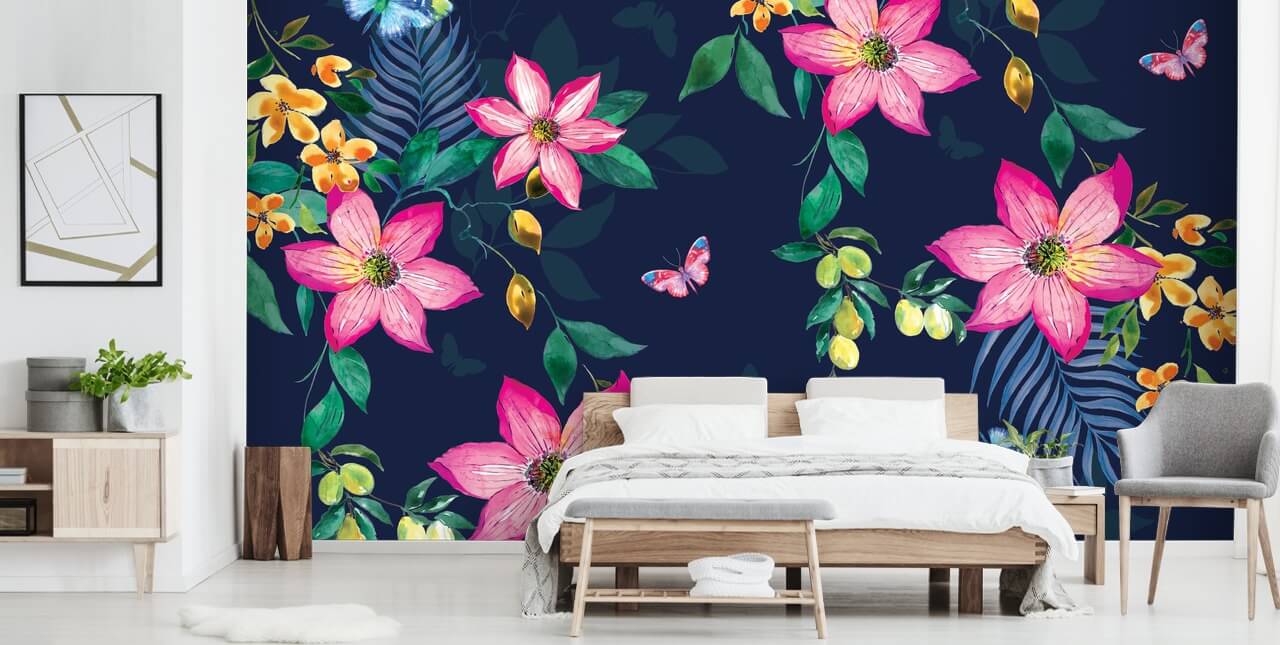 Pryder veggen din med denne floral tropiske blomster på marinen veggmaleri. Enkel å installere og leveres i paneler.