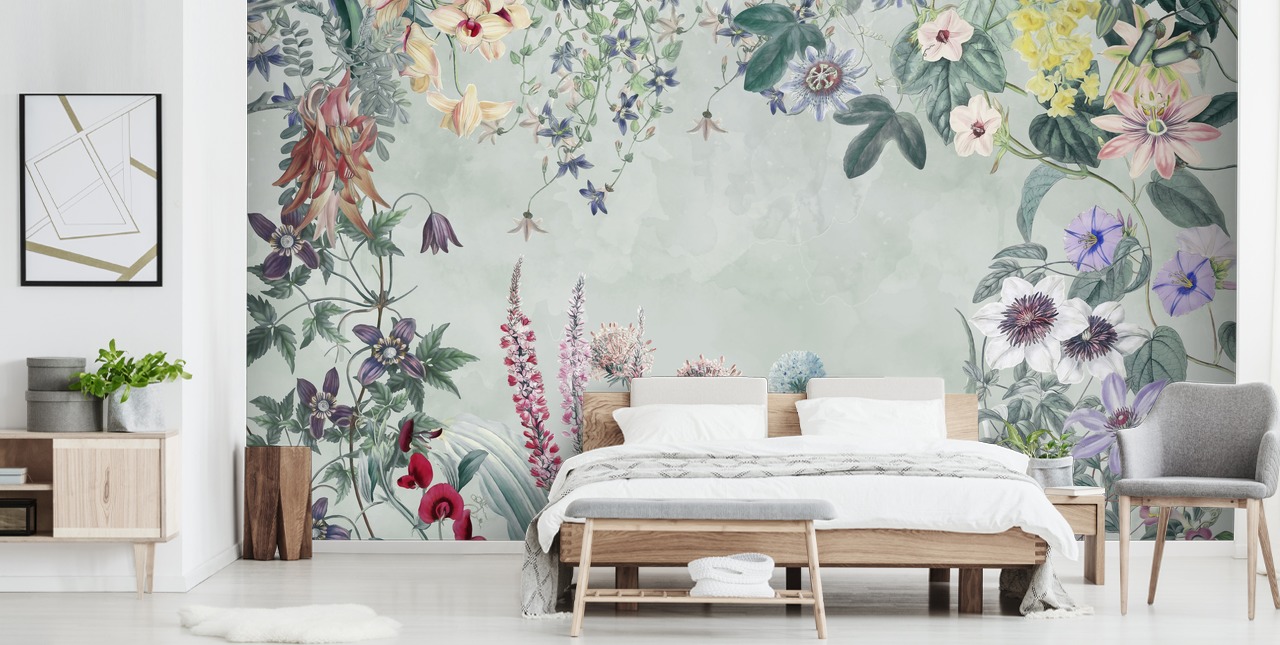 Hengende hager II - Blomstertapet Veggmaleri