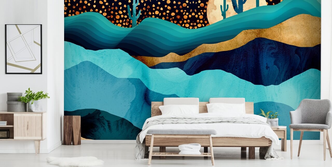 Installer denne guddommelige Indigo Desert på nattveggmaleri. Laget for å måle hvilken som helst vegg.