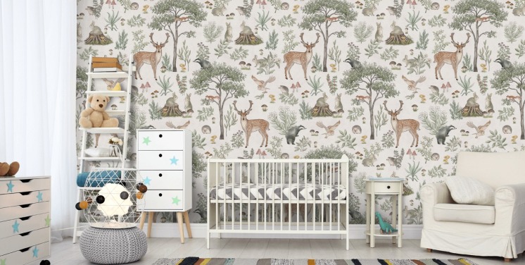 tilpassbart veggmaleri for barn kalt Animals in the Forest av Kikki Belle for barnas soverom