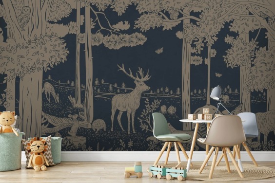 monokrom tonet skog og dyr tapet