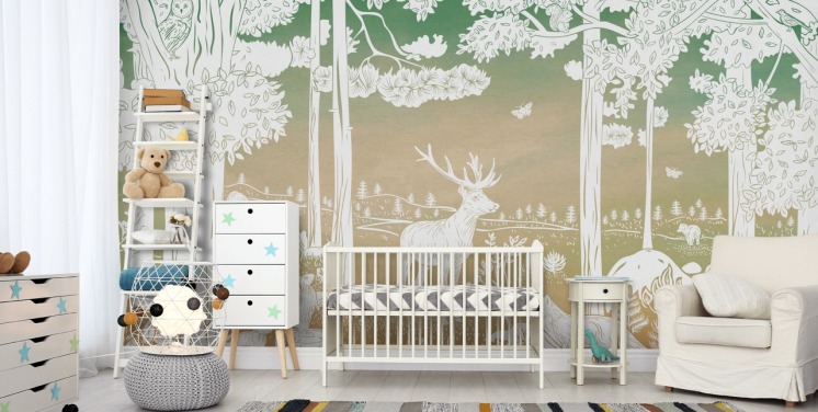 grønn og hvit skog med dyr tapet