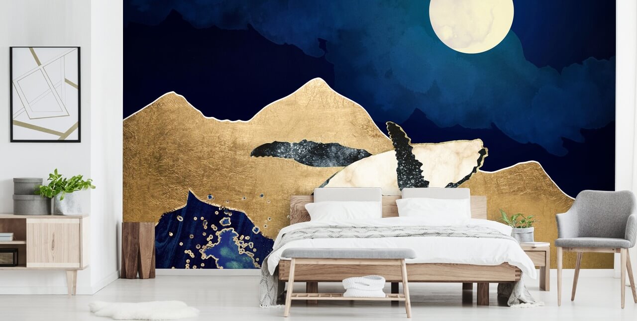 Vi tror at denne fantastiske designer tapet ville se ideelt ut i en beroligende master bedroom. Plasser dette nydelige hvalveggmaleriet på en vegg som du kan se når du sitter i sengen og plasser så lite møbler foran den som mulig. Mal de omkringliggende veggene i en skimrende gullmaling og velg mørke marineblå møbler som hodegjerde eller lenestol.