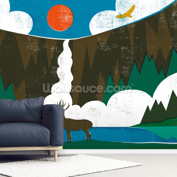 Installer dette skreddersydde Big Sky II Horisontal veggmaleri. Leveres i paneler og enkel å installere.