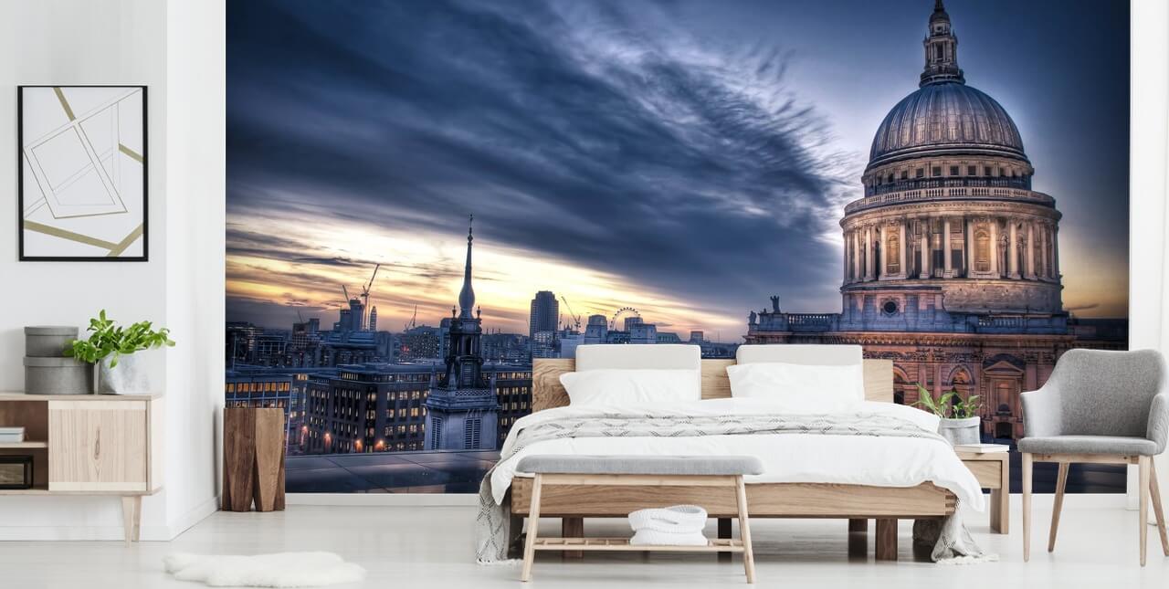 Barese på majestetisiteten til St. Pauls som lyser opp mot en engelsk humørsyk himmel. Tenk deg tilstedeværelsen dette vil ha i stuen, soverommet, kontoret og mer. Å bestille, bare ring oss eller fyll ut skjemaet på denne siden. Vi ber om veggens dimensjoner og valg av tapetmateriale. Velg mellom klassisk eller premium lim inn veggen eller strukturert skall og pinne.