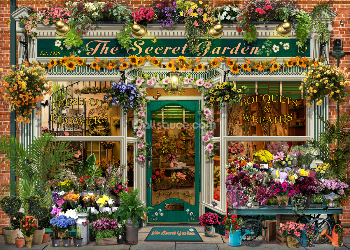 The Secret Garden er full av farger og sjarm, og er et spektakulært fasadetmaleri av illustratør Garry Walton.