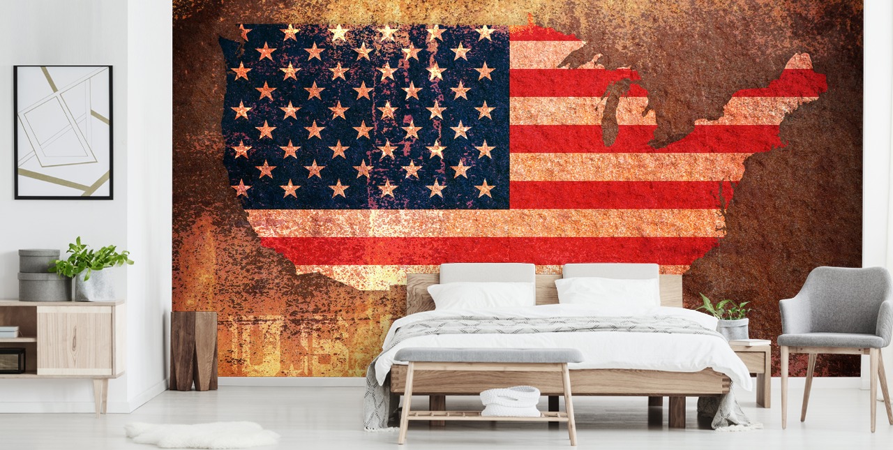 Gi hjemmet eller arbeidsområdet ditt det industrielle utseendet med dette stilige USA Flag on Rust tapetmaleriet av Michael Tompsett.
