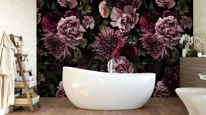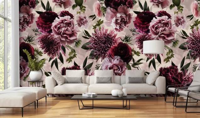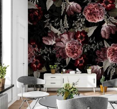 mørk floral peon i rosa tapet
