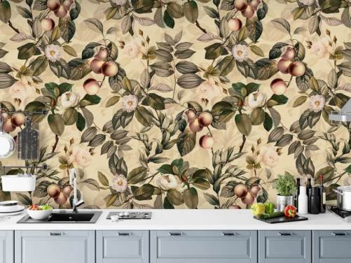 nøytral tonet frukt og blomst tapet