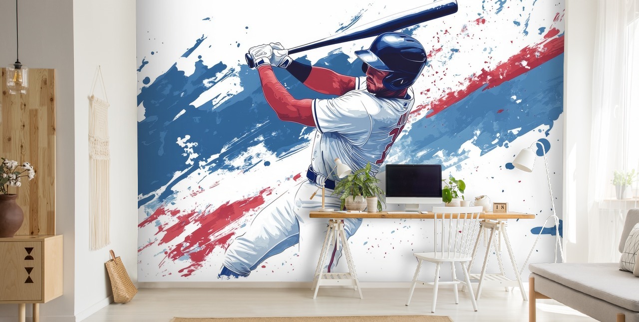 Med en levende illustrasjon av en baseballspiller i aksjon, bringer dette veggmaleriet farge, energi og bevegelse til ethvert rom. Det er et ideelt valg for idrettsklubber, skoler, treningssentre eller en ung baseballfanes soverom, og skaper et livlig og inspirerende miljø.