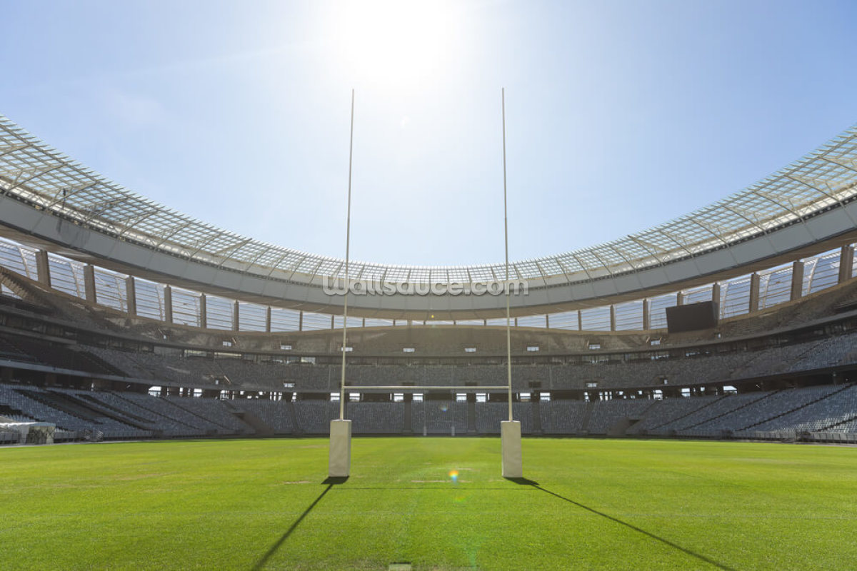 Motiver den spirende rugbystjernen i livet ditt med Sunny Rugby Stadium, et fengslende rugby tapetmaleri fra Wallsauce.
