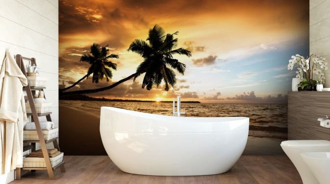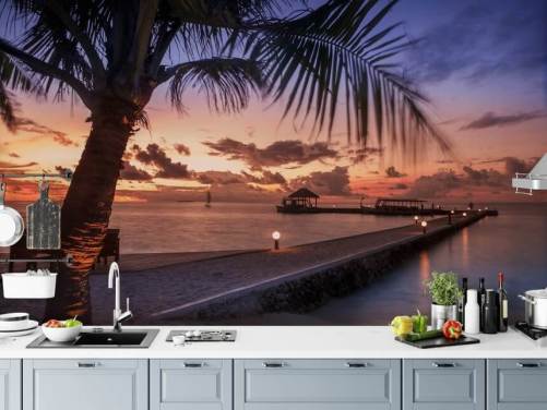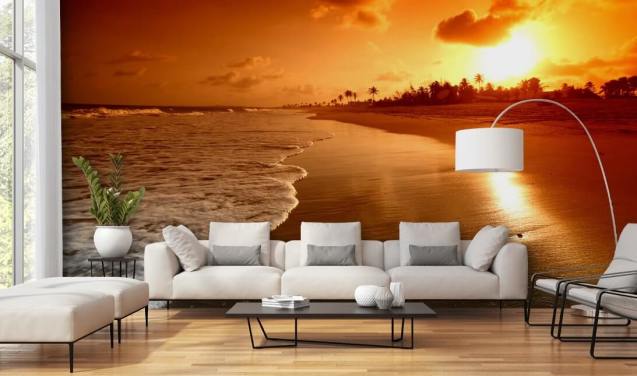 Solnedgang på en tropisk strand veggmaleri