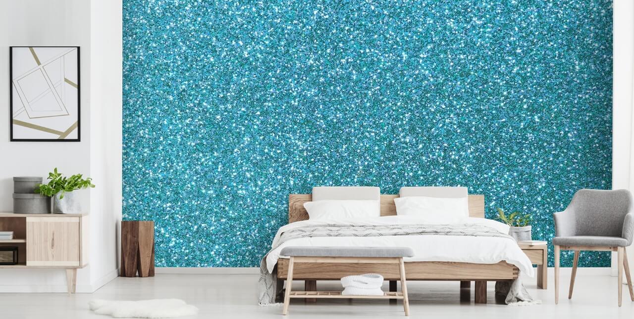 Denne fantastiske blå glitter tapet veggmaleri umiddelbart bringer tanker om glitrende havfrue haler. Det er fin-tastisk!