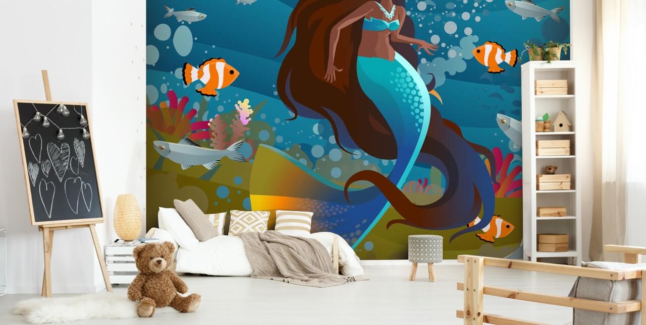 Vær under sjøen med denne fantastiske Blue Star Fish Mermaid tapet! Laget for å måle hvilken som helst vegg.