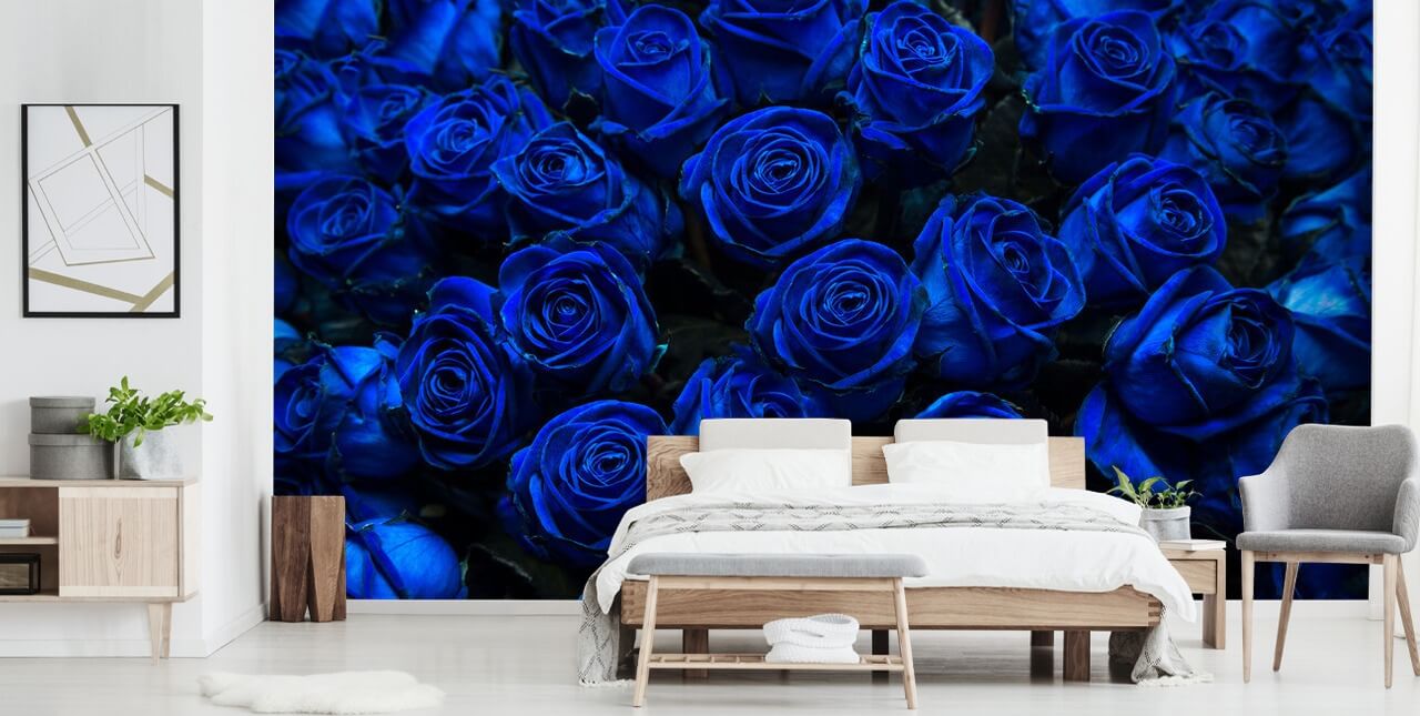 Gi hjemmet ditt en luksuriøs følelse med dette laget for å måle Bonny Blue Roses veggmaleri. De elektriske blå lagene av farge er ekstremt iøynefallende og vil gjøre en blendende funksjon vegg i soverommet eller i stuen.