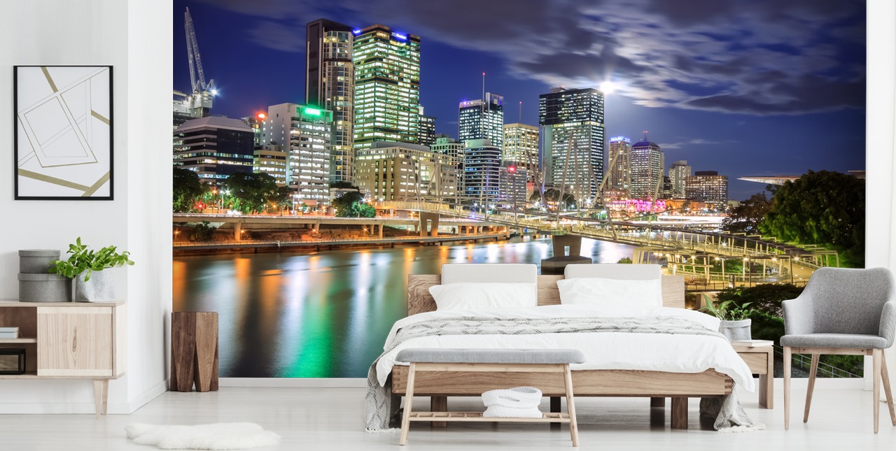 Nyt en byutsikt hver dag med denne skreddersydde Brisbane på Night tapet veggmaleri fra Wallsauce.com.
