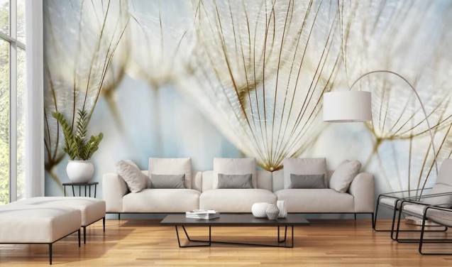 hvit løvetann tapet veggmaleri kalt Abstract Dandelion for salonger, kjøkken og bad
