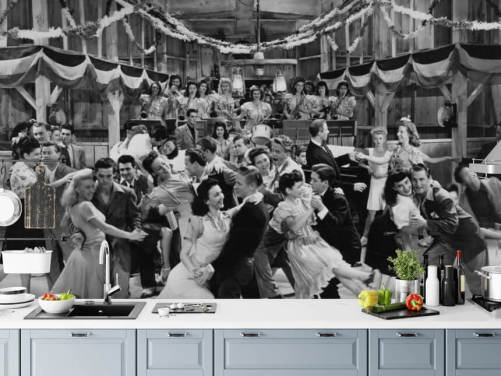 svart og hvitt fotografi av en dansesal på 1940-tallet tapet