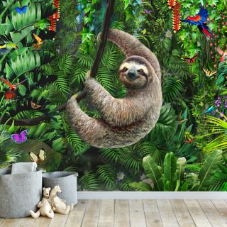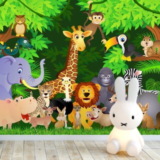 fargerikt tilpassbart tegneserie dyretapet veggmaleri kalt Animals in the Jungle for barnas soverom