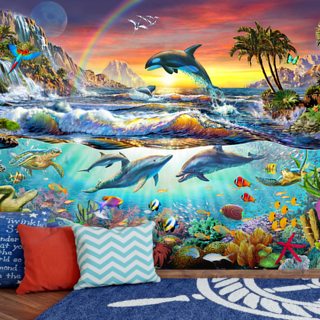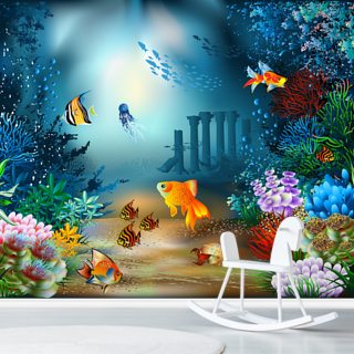 fargerikt tilpassbart havtapet veggmaleri kalt Underwater Scenery av Adrian Chesterman for barnas soverom
