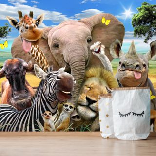 fargerikt tilpassbart dyretapet kalt Africa Selfie av Howard Robinson for barnas soverom