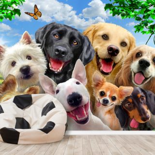 tilpasset tapet for hunder kalt Dogs Selfie av Howard Robinson for barnas soverom, barnehage eller lekerom