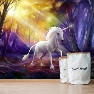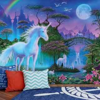 lilla, blå og grønn tilpasset enhjørningstapet kalt Unicorn Bridge av Danny Flynn for barnas soverom