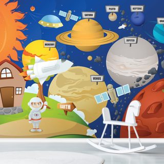 flerfarget tilpasset planettapet veggmaleri kalt Planets in Space av Adrian Chesterman for barnerom