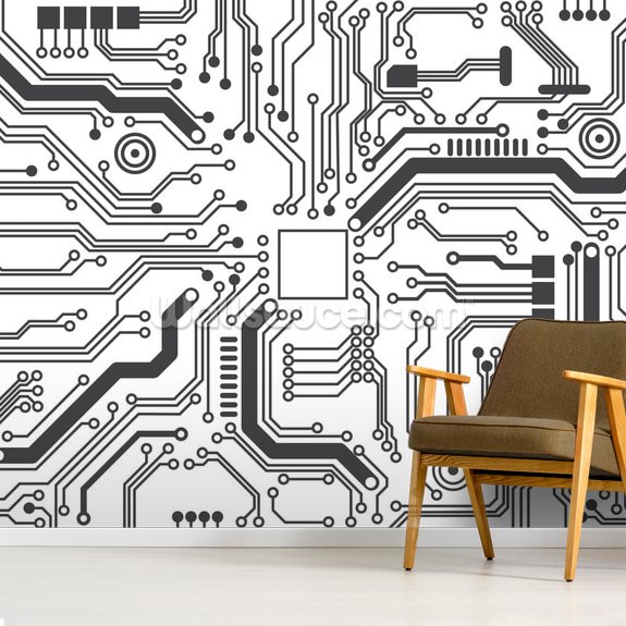 Lag det Techno-utseendet for datamaskinen og ingeniøreksperten din, dette veggmaleriet med kretskortdesign vil få L.E.D.-ene til å lyse opp. Kretskortet har en elektronisk geometrisk design, med hvitt og kull for et ekte moderne utseende. Wallsauce custom lager alle veggmaleriene deres slik at de passer perfekt til veggrommet ditt. Bestilling er enkelt og installasjonen er akkurat som å henge tapet.