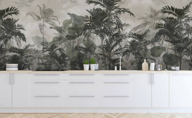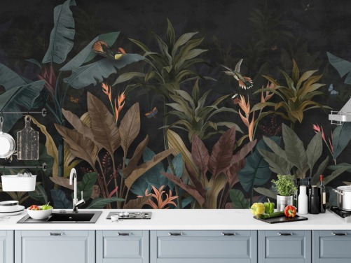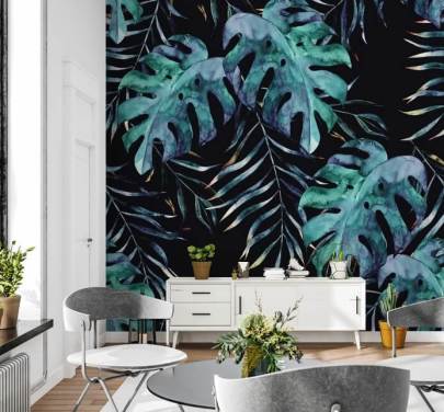 mørkt palmetretapet kalt Palm Trees and Butterflies Dark at Wallsauce for soverom