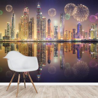 Dubai, den ultramoderne byen, med verdens høyeste bygning kan være en del av interiørprosjektet ditt med et av våre tapetmalerier i Dubai. Se byens skyline fra skyene i denne byen som kan skryte av bygninger som strekker seg inn i skyene.