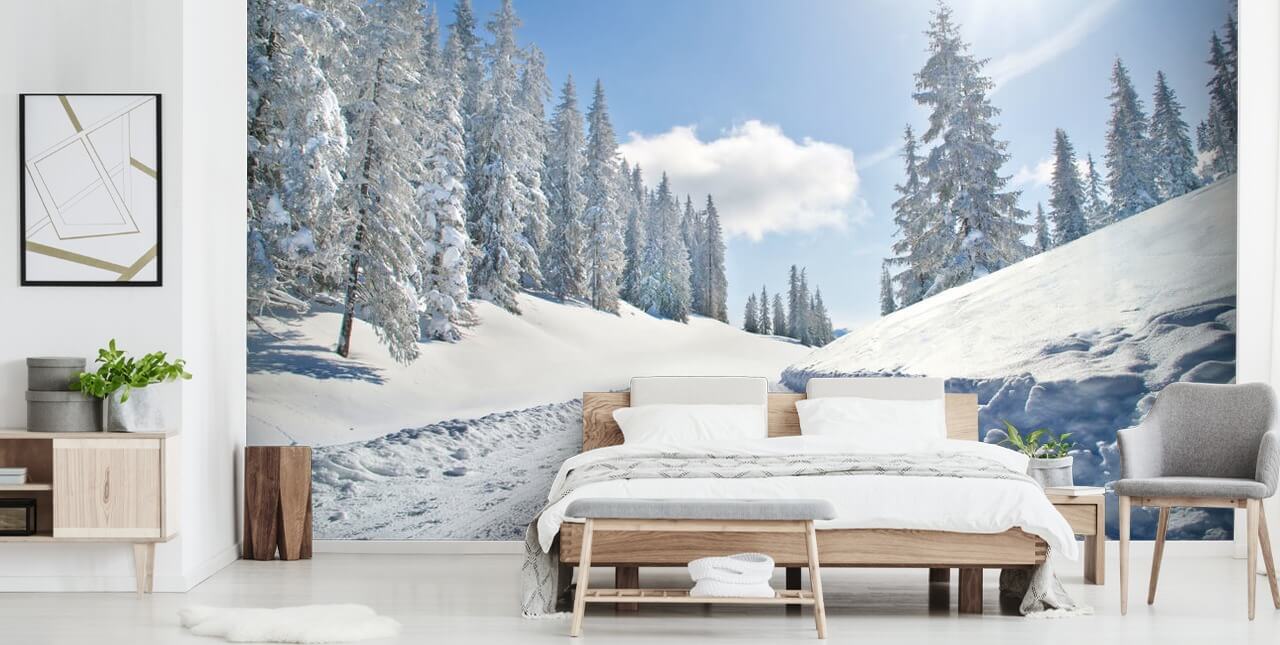 Lag et vinterland med denne tomme snødekte veien Bakgrunn tilgjengelig på peeling og stick tapet