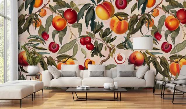 Legg krydder og dristig farge til kjøkkenet eller restauranten med et pulserende fruktveggmaleri. Med appelsiner, epler, sitroner, jordbær, kiwi frukt, lime og mange flere eksotiske frukter, er du sikker på å finne en frukt veggmaleri som skjerper appetitten din.