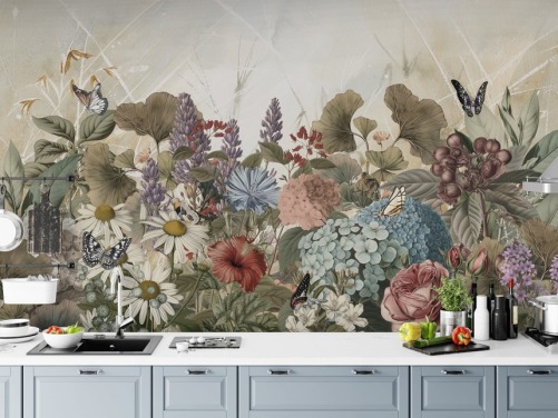 tilpasset vintage blomstermaleri kalt Amoura av Loris Drago for spisestuer og ganger