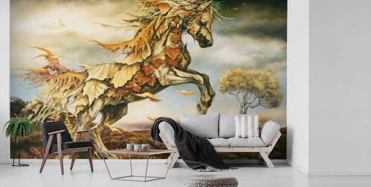 Høst hest laget av blader Mural