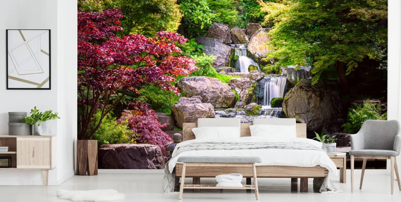 Nyt denne skreddersydde japanske fossen tapet veggmaleri i hjemmet ditt.