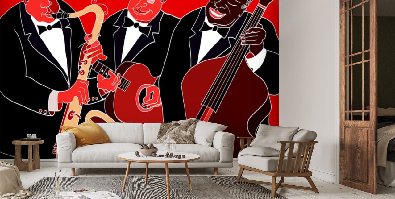 Stunning Jazz Band Trio wall mural from Wallsauce. This high quality Jazz Band Trio wallpaper is custom made to your dimensions. Easy to order and install .