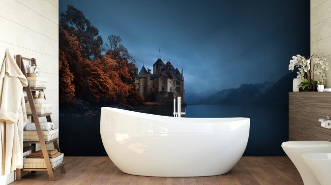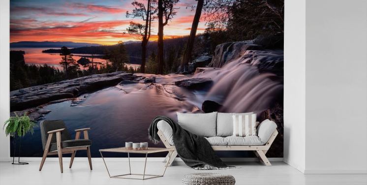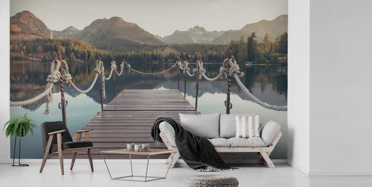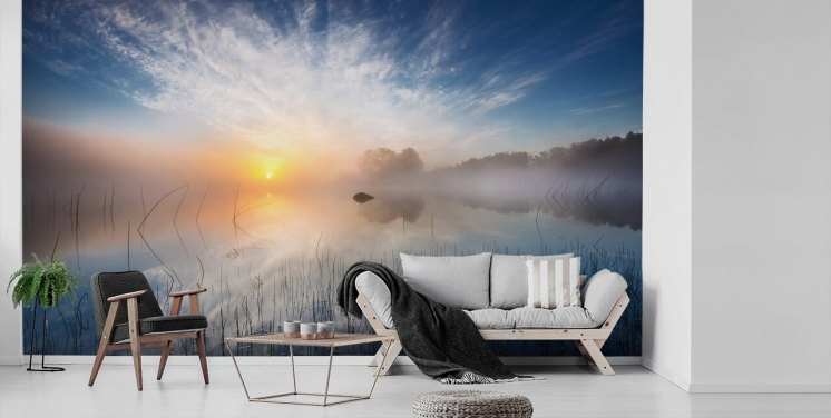 Transport deg selv til et tapet ved innsjøen der vannet er så stille at det ser ut som glass. Hør gjessene fly over hodet, raslingen av trærne i nærheten og sporadisk sprut av en fisk når den vipper i det stille vannet i nærheten. Vær rolig, vær beroliget og vær i fred med et fantastisk tapetmaleri i innsjøen hjemme eller på arbeidsstedet.