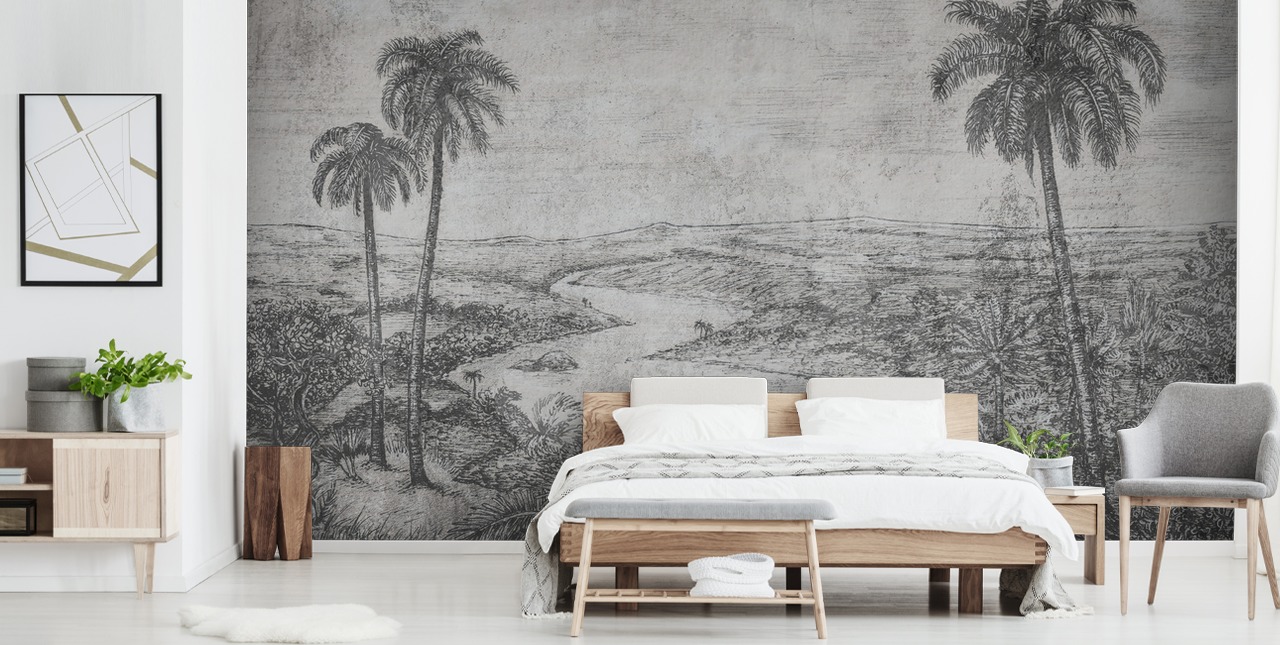 Hver tapet veggmaleri vi produserer er trykt på forespørsel til dine veggdimensjoner og er unik for deg. Vi holder ikke aksjer.