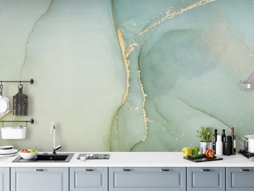 lysegrønn tilpassbar marmor tapet veggmaleri kalt Light Teal Green Marble for kjøkken og bad