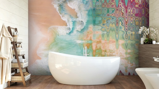 lilla, blå og rosa tilpassbar akvarell marmor tapetmaleri kalt Pink Swirl for soverom og bad