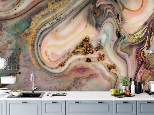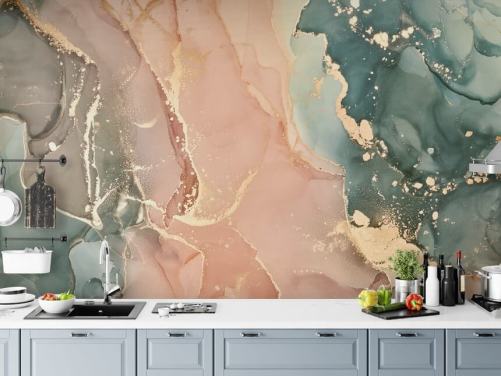 rosa og gull tilpasset marmor tapet veggmaleri kalt Dreamy Pastel and Gold for kjøkken