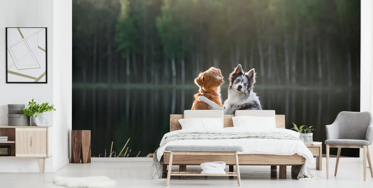 Elsker du ikke dette søte paret i vår Pawfect Friends veggmaleri? Denne fantastiske hunden tapet er ideell for alle hundeelskere hjem, veterinærer eller hundegroomers. Ikke bare er det en søt foto tapet av to hundevenner, men bakteppet er en vakker og naturlig setting også, noe som gjør det pawfect for hjemmet.